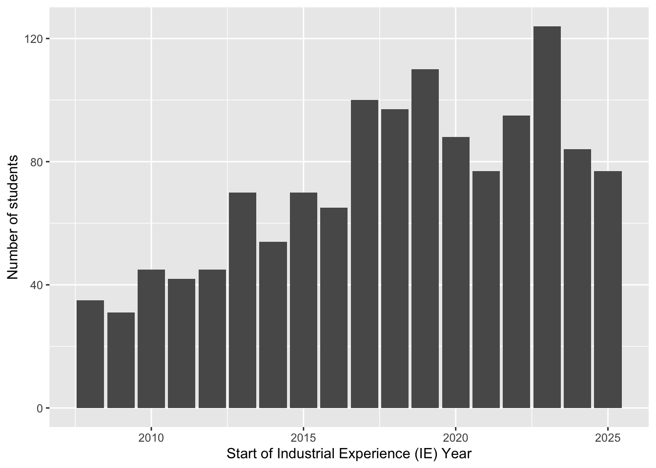 We have a large and established Industrial Experience (IE) program in Computer Science, which has grown significantly since 2010, see Figure 1